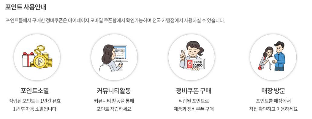 - 다양한 정비 서비스: 엔진오일 교체, 브레이크 패드 교체, 타이어 교환 등 다양한 차량 정비를 지원한다.