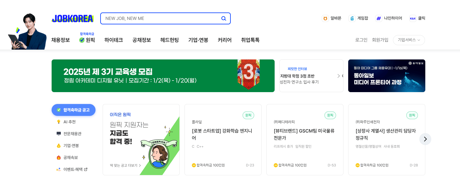 잡코리아는 국내 구인구직 플랫폼의 원조격 사이트로, 가장 방대한 채용 공고 데이터를 보유하고 있다.