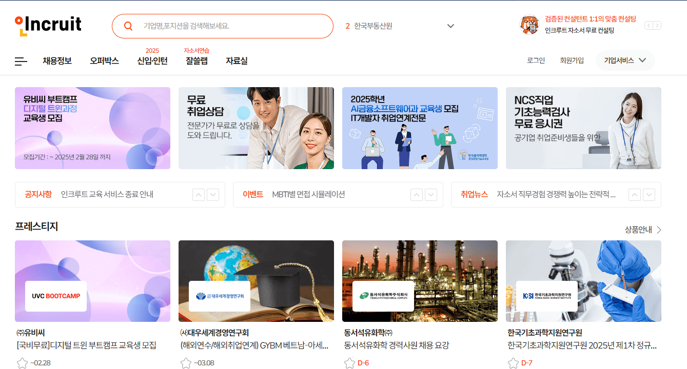 인크루트는 구직자 중심의 서비스를 강조하며, 취업을 위한 다양한 맞춤형 정보를 제공한다.