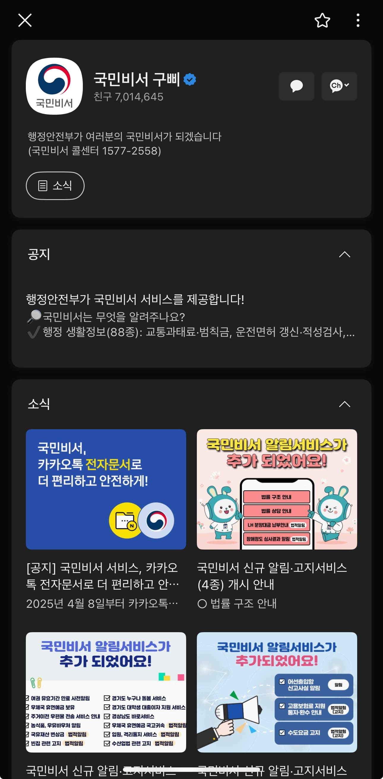 - 카카오톡: ‘국민비서’ 채널 차단