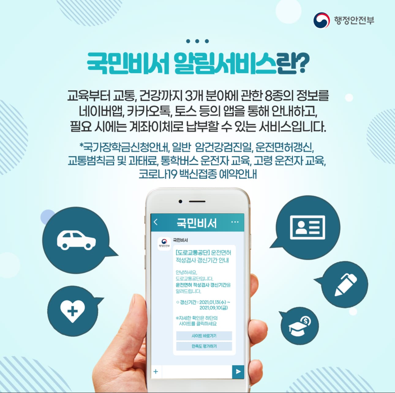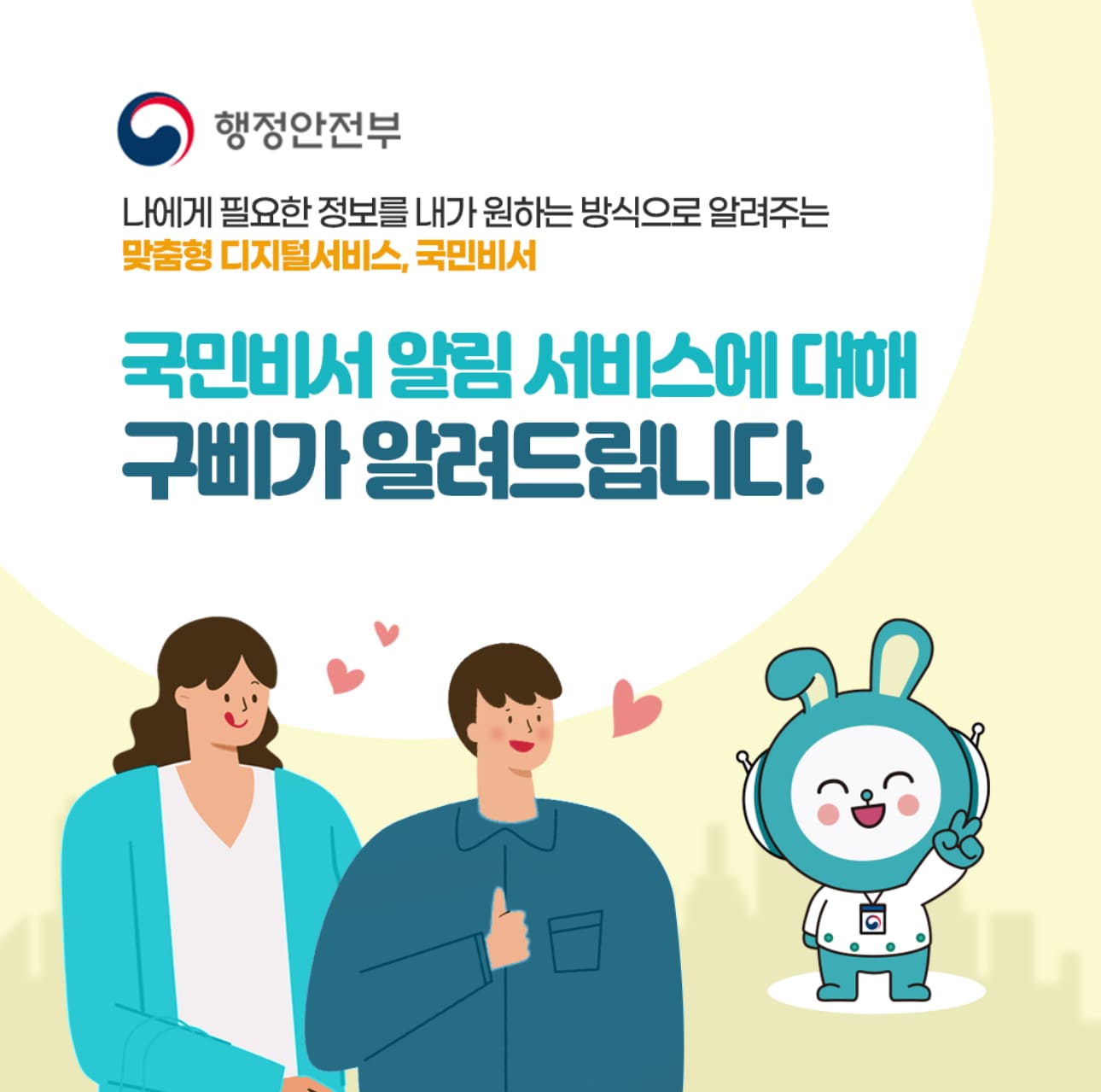 국민비서 알림서비스는 행정안전부가 국민 편의를 위해 만든 ‘맞춤형 알림 서비스’입니다.