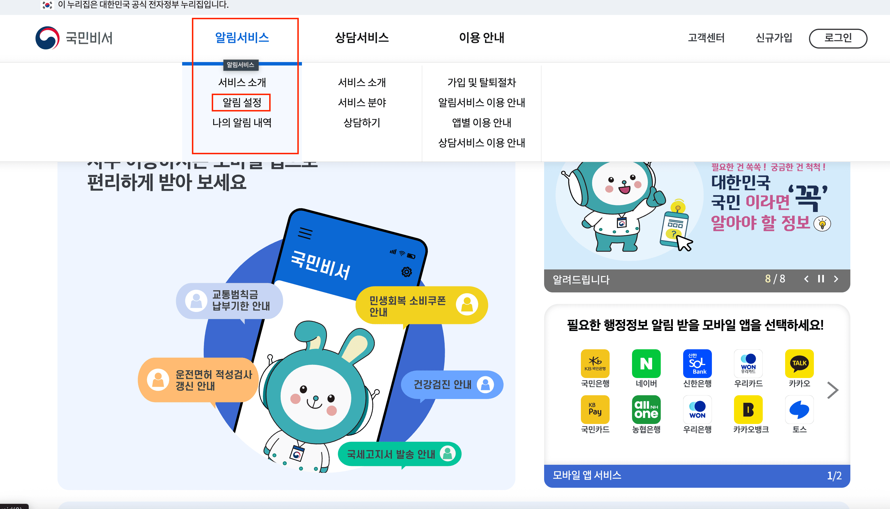 - 국민비서 알림서비스 신청 방법 (PC/모바일)