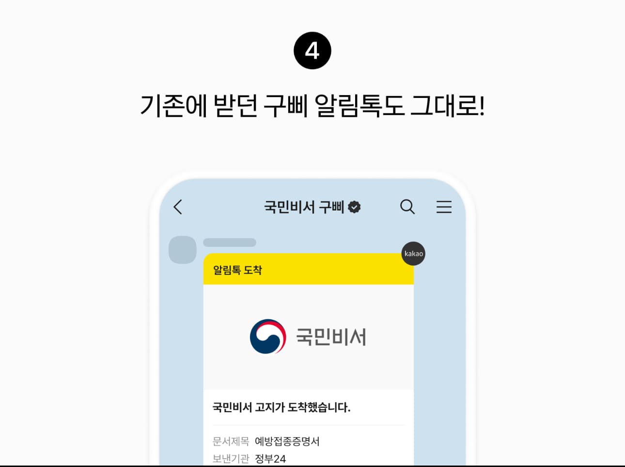 - 카카오톡: 국민비서 플러스친구 추가 후 신청