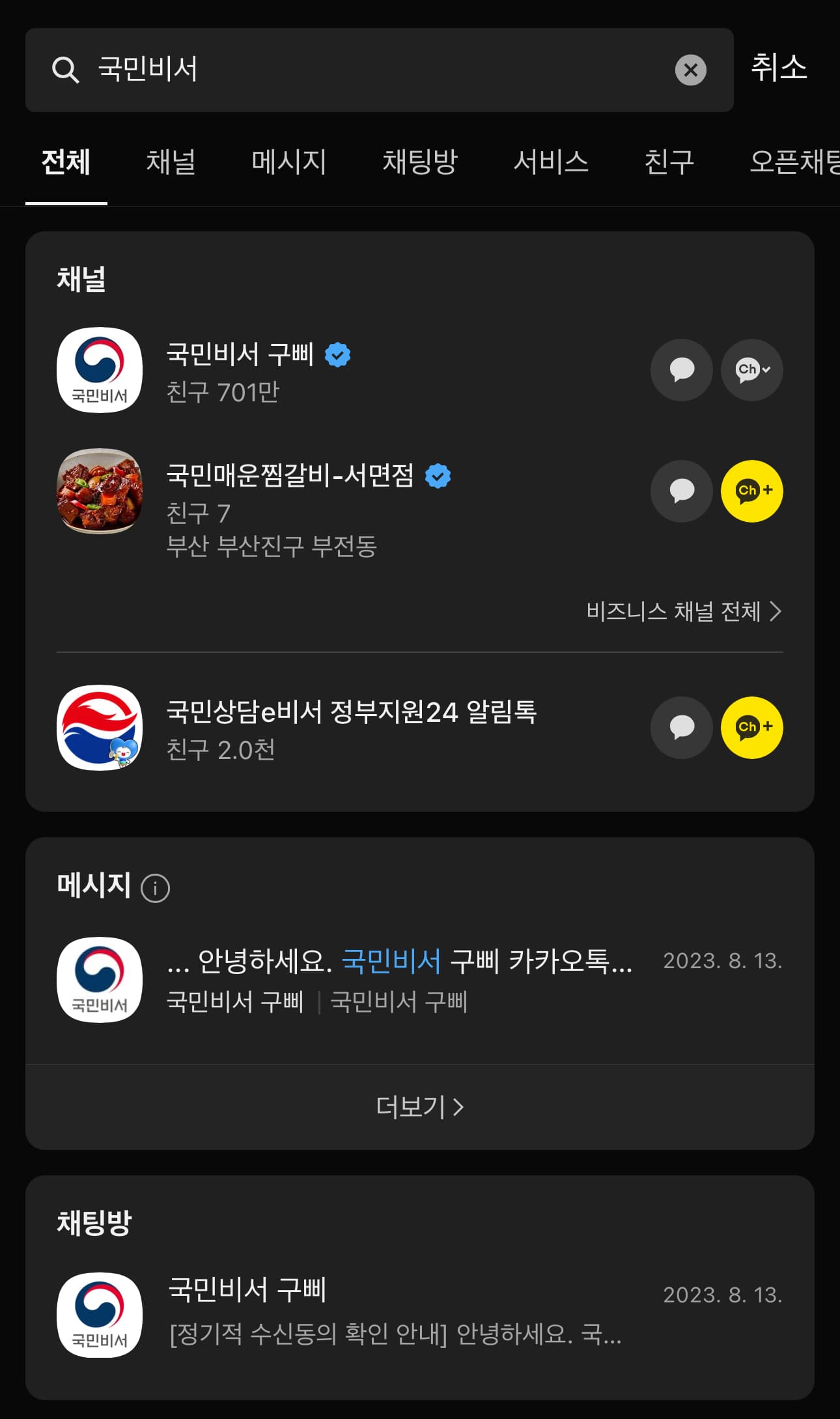 2️⃣ 검색창에 ‘국민비서’ 입력 후 채널 접속