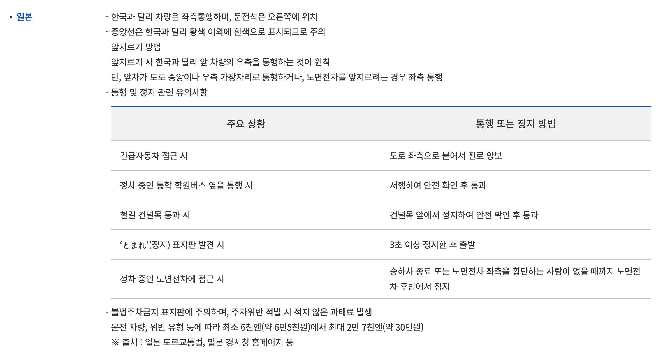 - 일본에서는 운전 중 국제 운전면허증과 원래 운전면허증, 여권을 항상 소지해야 한다.