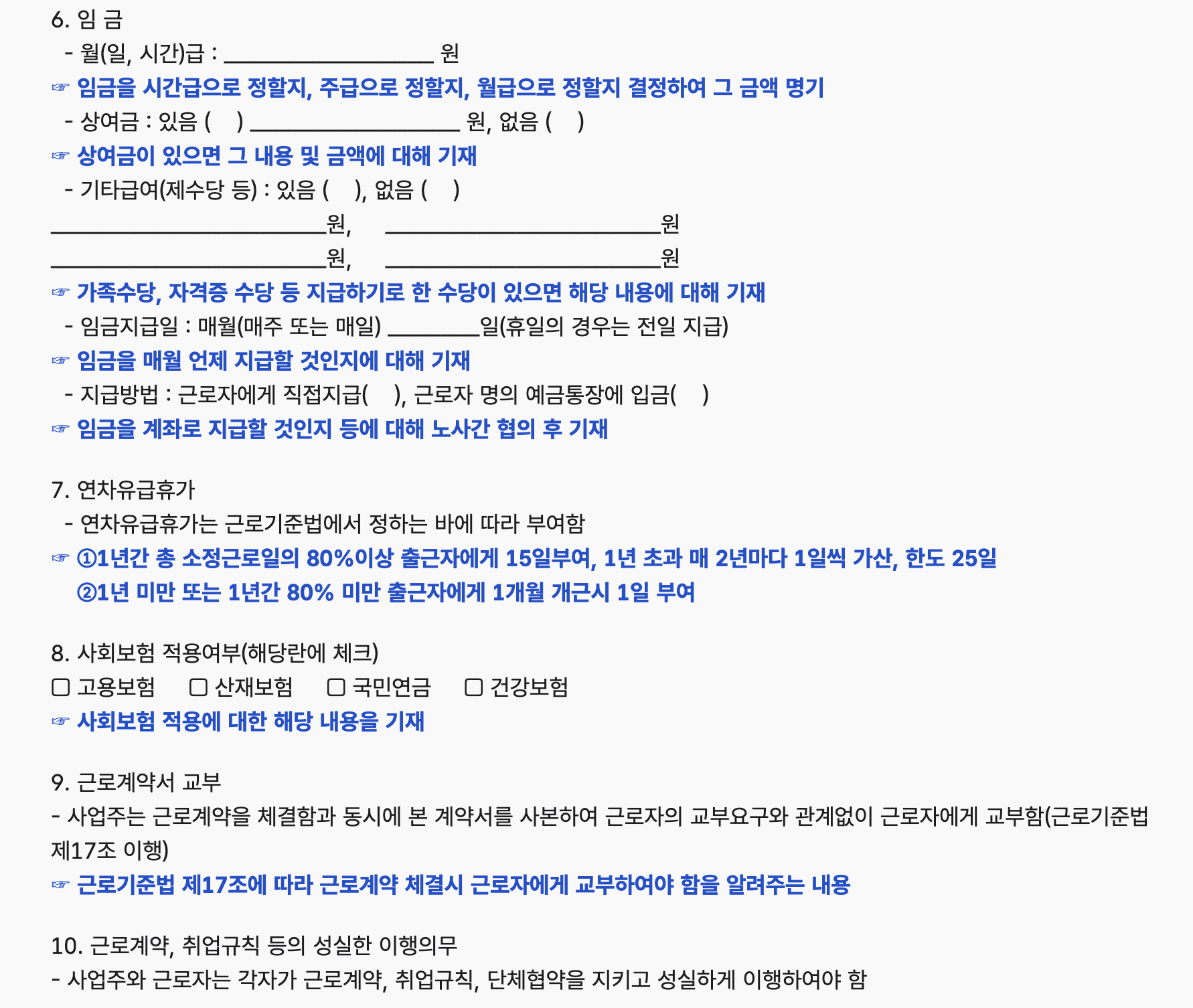 6. [사업주 필독] 근로계약서 작성 시 유의사항