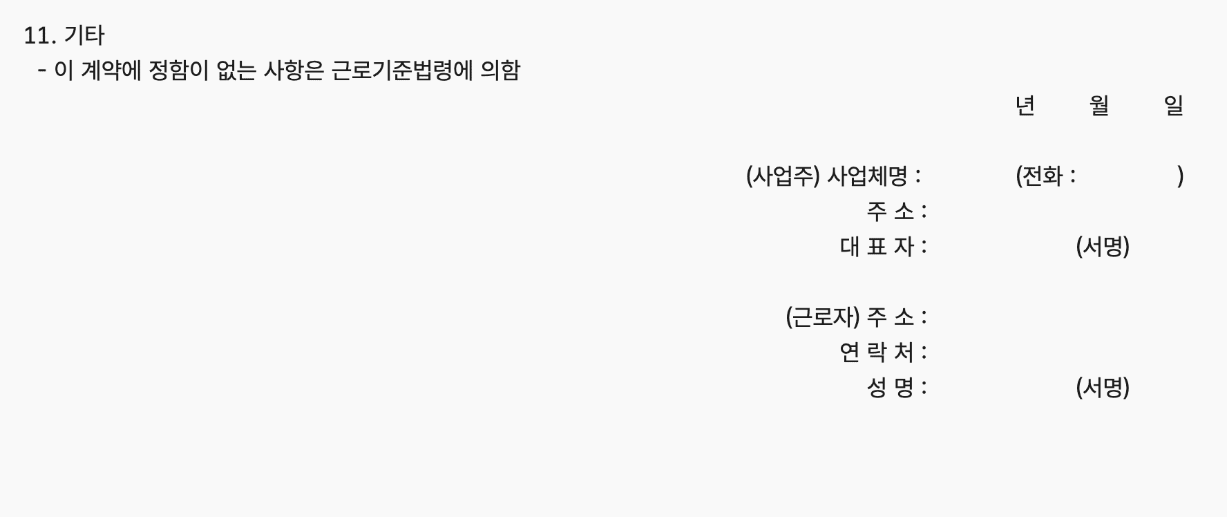 📌 사업주는 근로계약서를 3년간 보관해야 하며, 서명 후 1부를 근로자에게 제공해야 한다.