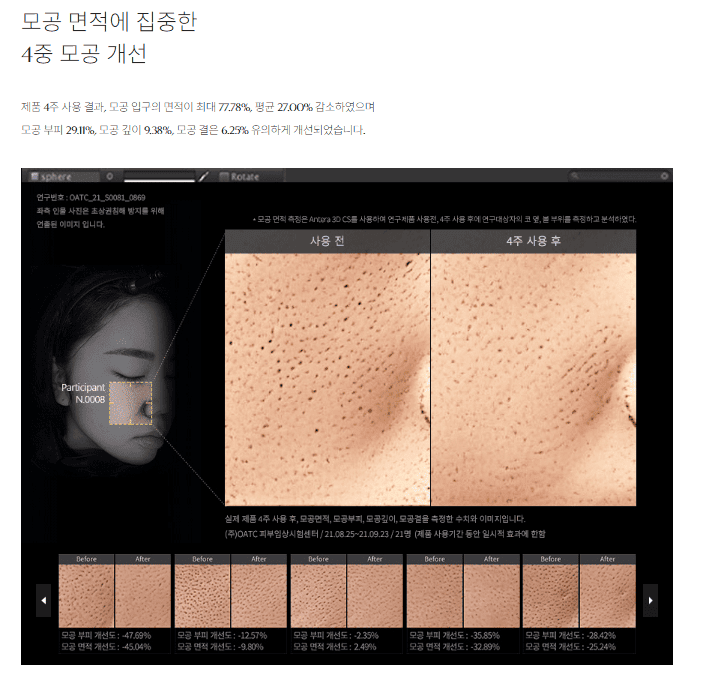 - 사용 2주 후: 85%의 사용자가 모공 크기 감소를 경험