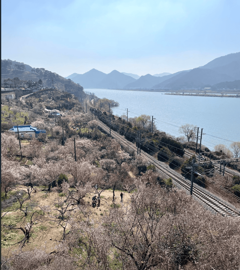✔ 📷 인생샷 포인트: 광양 매화마을의 섬진강 전망 포인트, 양산 순매원의 기차 철길, 통도사의 사찰과 매화 조화