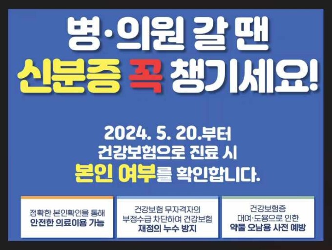 • 의료기관 방문 전 확인: 미 제시 시, 건강보험 급여가 제한될 수 있으므로 방문하려는 의료기관에서 신분증 확인 의무화를 적극적으로 시행하는지 미리 확인하는 것이 좋다.