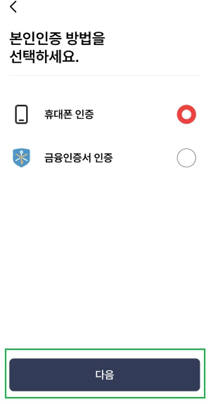 📌 휴대폰 인증 또는 금융인증서를 활용하여 본인이 편한 방식대로 본인인증을 완료한다