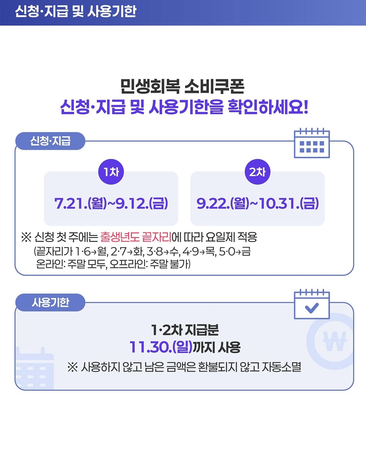 - 신청은 9월 22일 ~ 10월 31일, 첫 주에는 출생 연도 끝자리에 따른 요일제 적용