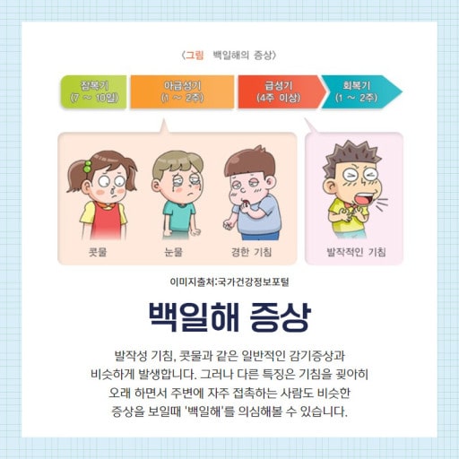백일해는 보르데텔라 백일해균에 감염되어 기침, 호흡곤란, 구토를 유발하는 호흡기 질환을 의미한다. 여름과 가을에 백일해의 발병이 증가하는 경향이 나타난다. 또한 가족 내 2차 발병률이 80%에 달한다. 특히 어린아이들에게 치명적인 만큼 연령이 어릴수록 사망률이 높아지며, 1세 미만의 사망률이 가장 높다. 백일해는 ‘백일기침’이라고도 불리며, 이는 질병의 특징적인 기침 증상 때문이다.
