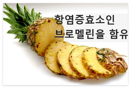 파인애플은 비타민 C와 망간, 그리고 항염증효소인 브로멜린을 함유하고 있다. 브로멜린은 염증을 일으키는 체내 단백질을 분해하는 과정에서 부비강 점막의 붓기를 줄이는데 도움을 준다. 비타민 C도 풍부해서 히스타민 수치를 조절하는 역할을 한다.