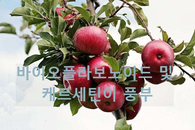 사과는 바이오플라보노이드와 천연 항히스타민제로 불리는 항산화제인 케르세틴이 풍부하다. 역시 꾸준한 섭취시 증상 완화에 도움이 될 수 있다. 또한, 식이섬유가 풍부하여 장 건강 개선에도 도움을 준다.