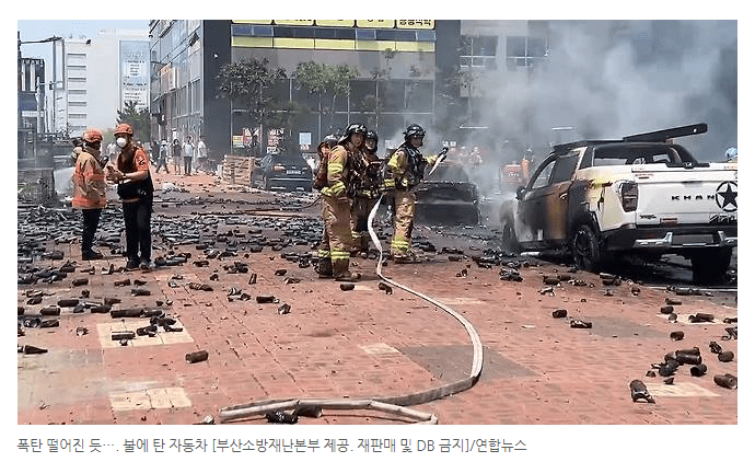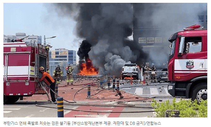 2024. 05. 31. 부산 강서구 명지 신도시에 위치한 한 마트 공터에 쌓아놓은 휴대용 부탄가스에서 불이 시작돼 가스통이 연쇄 폭발하면서 차량 1010여 대가 불타는 등 주변이 아수라장으로 변하고 화재가 커졌다.