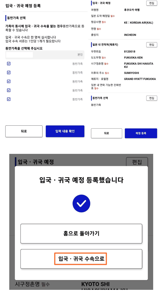 - 일본 입국 날짜 및 공항 선택