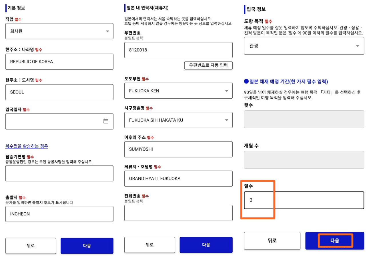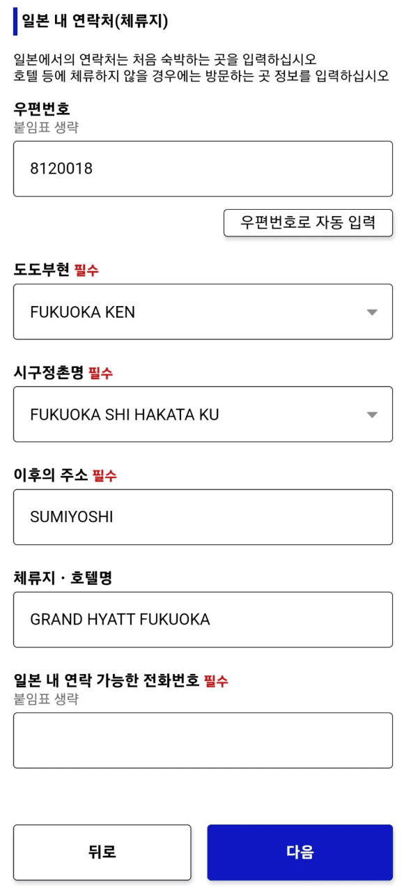- 일본 내 체류지(호텔, 숙소 주소) 입력
