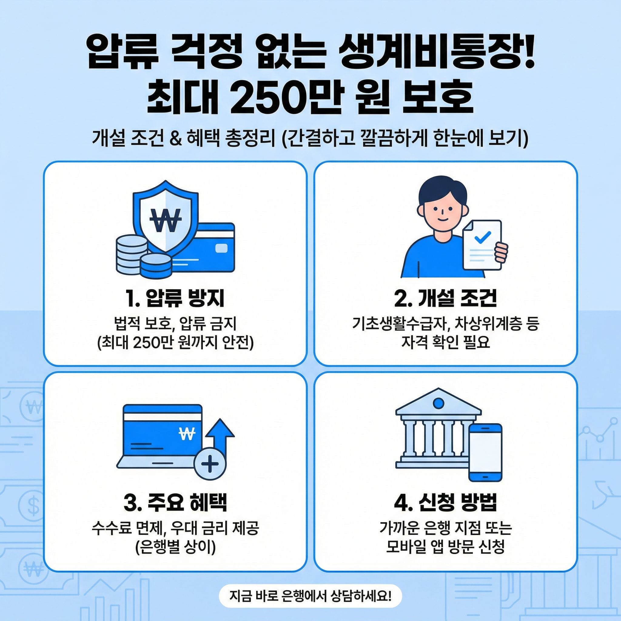 생계비통장 개설 조건은 까다롭지 않지만, 제도적 효과는 매우 큽니다.
