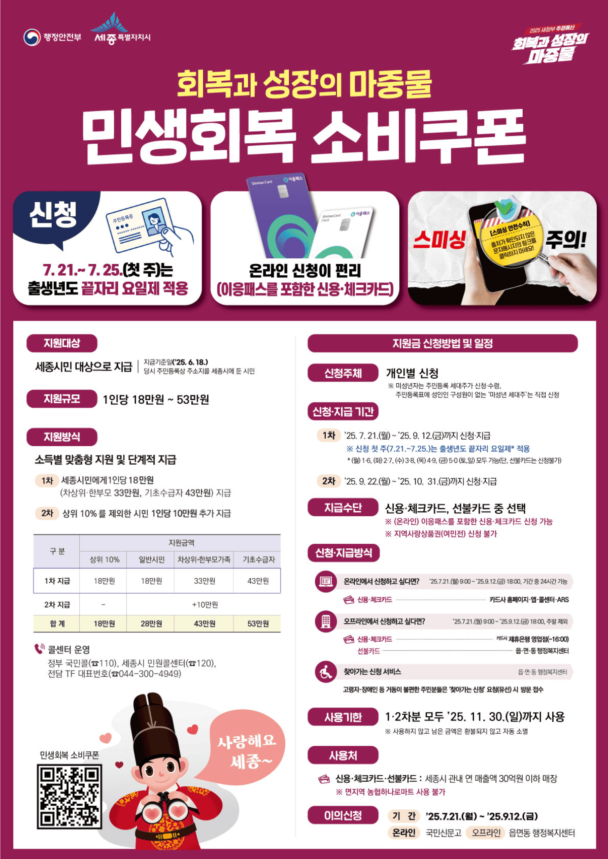 2025년 7월부터 시작된 세종시의 민생회복 소비쿠폰 지급!