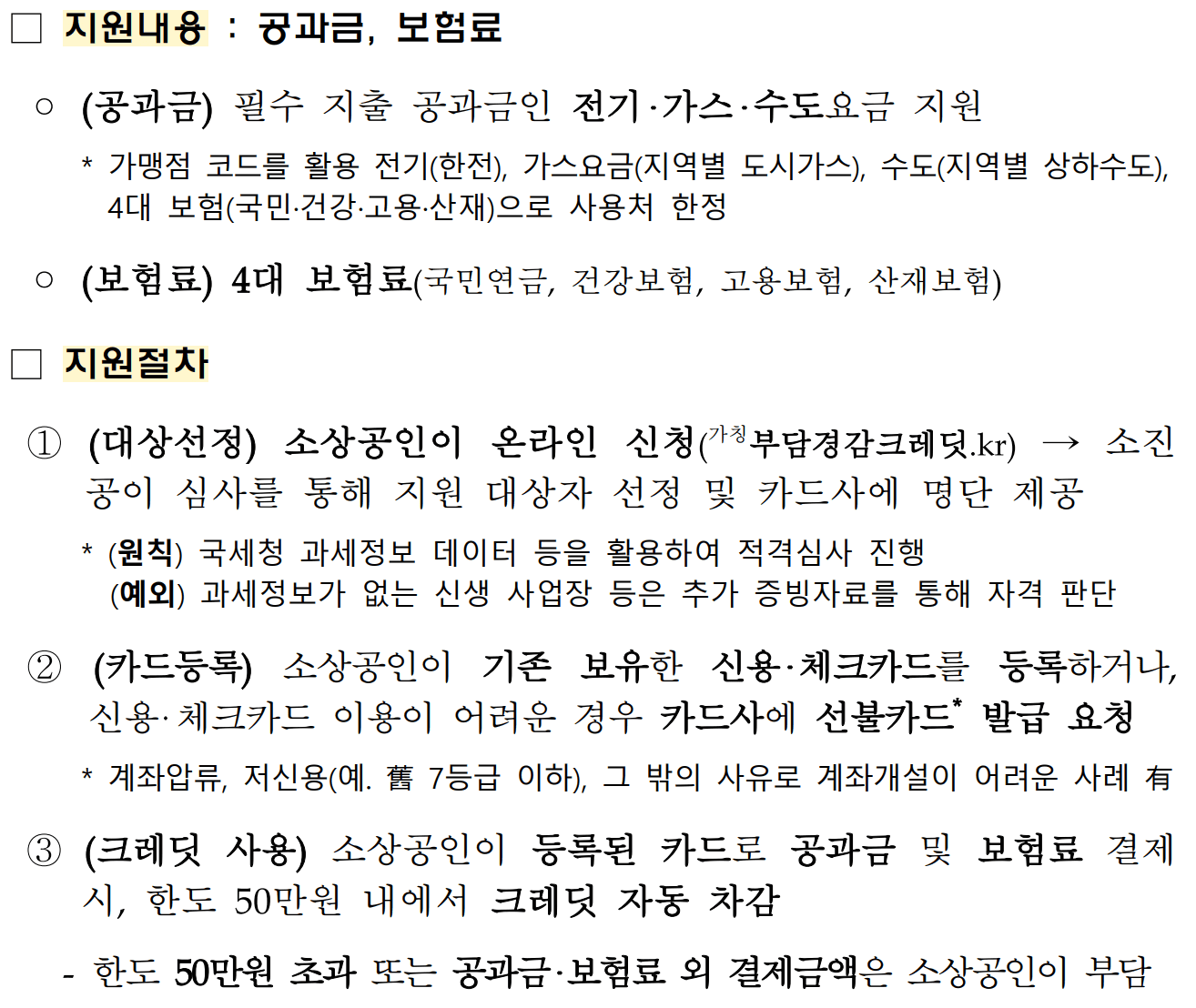 소상공인 부담경감 크레딧 50만원 지원! - 신청 대상·사용처·지급일정 총정리