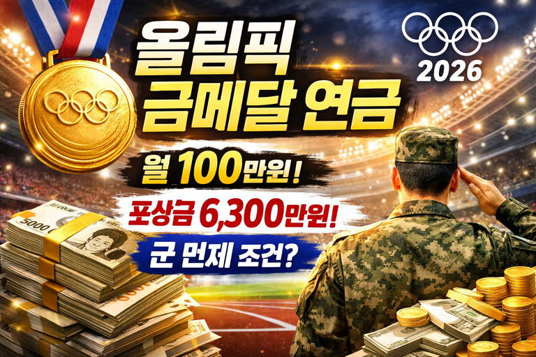 올림픽 금메달 연금 2026 최신 총정리|월 100만원 실수령액·포상금 6,300만원·군면제 조건까지