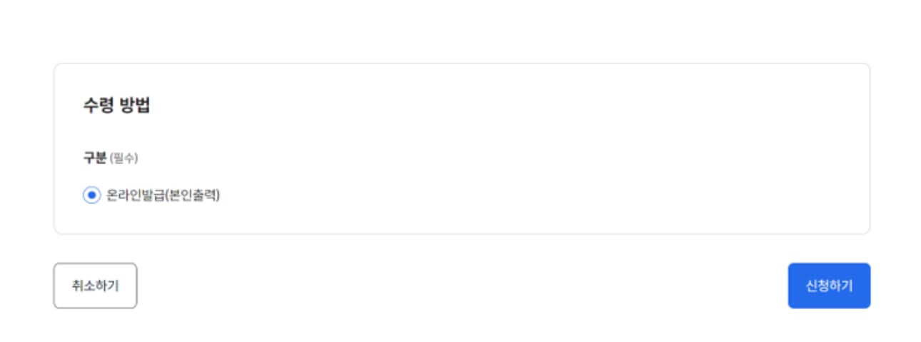 - 수수료: 인터넷 발급 - 무료 / 방문 발급 - 1,000원 내외