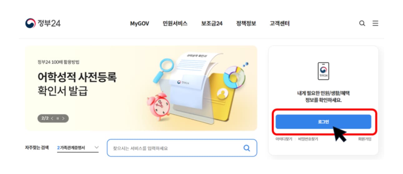 📌 1단계: 정부24 홈페이지 접속 및 로그인