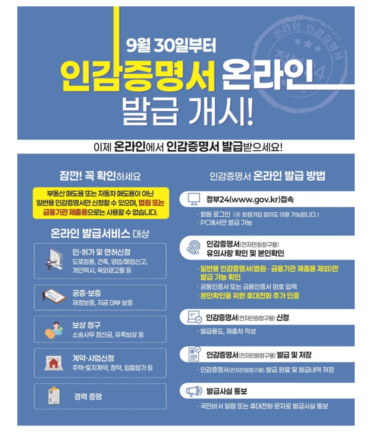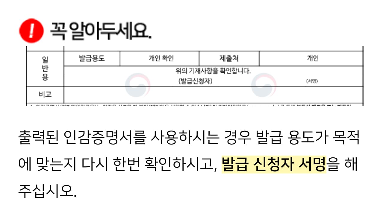 - 온라인으로 발급하신 인감증명서의 경우, 반드시 발급자 서명 후 제출 하시길 바랍니다.