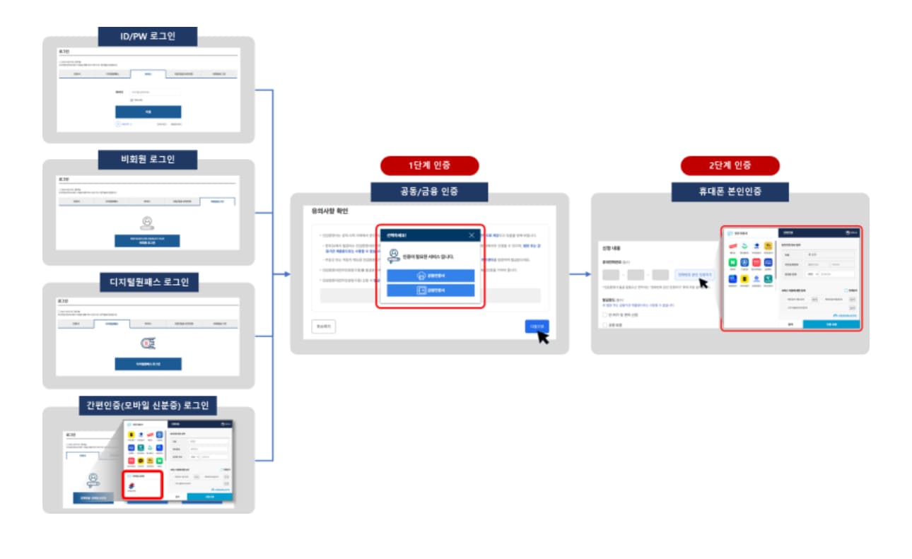ID/PW, 비회원, 디지털원패스, 간편 인증(모바일신분증)