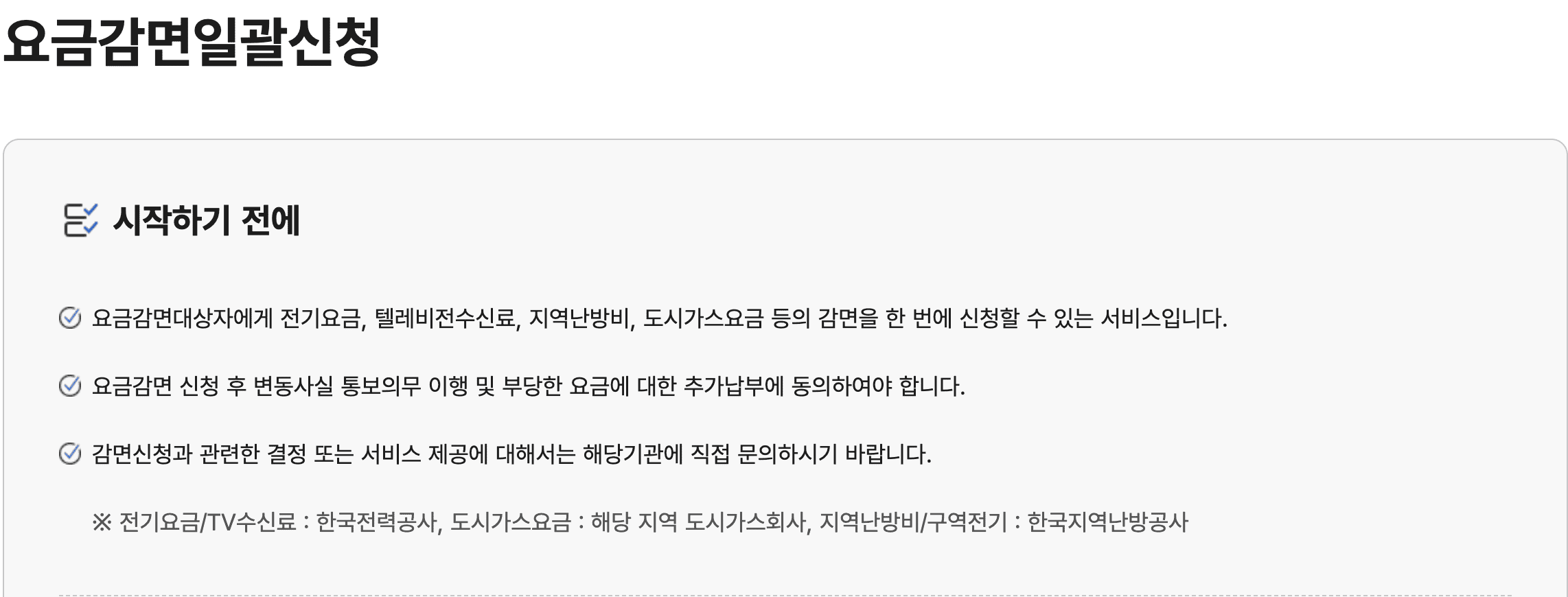 ✅ 신청 후 1~2주 내에 각 기관(한전, 가스사, KBS 등)으로 전달되며, 다음 고지서부터 감면이 적용됩니다.