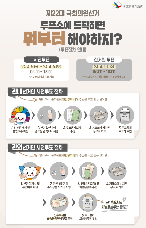 2024년 4월 10일에 실시되는 제22대 국회의원선거를 앞두고 있다. 2006년생부터 투표가 가능하며 오는 4월 5일부터 6일까지 이틀 동안 사전투표가 진행된다.