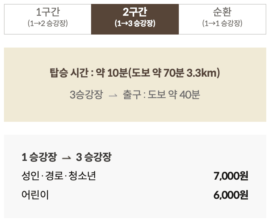 - 편도 모노레일 + 도보 하산 (자연 감상 & 체력 부담 적음)