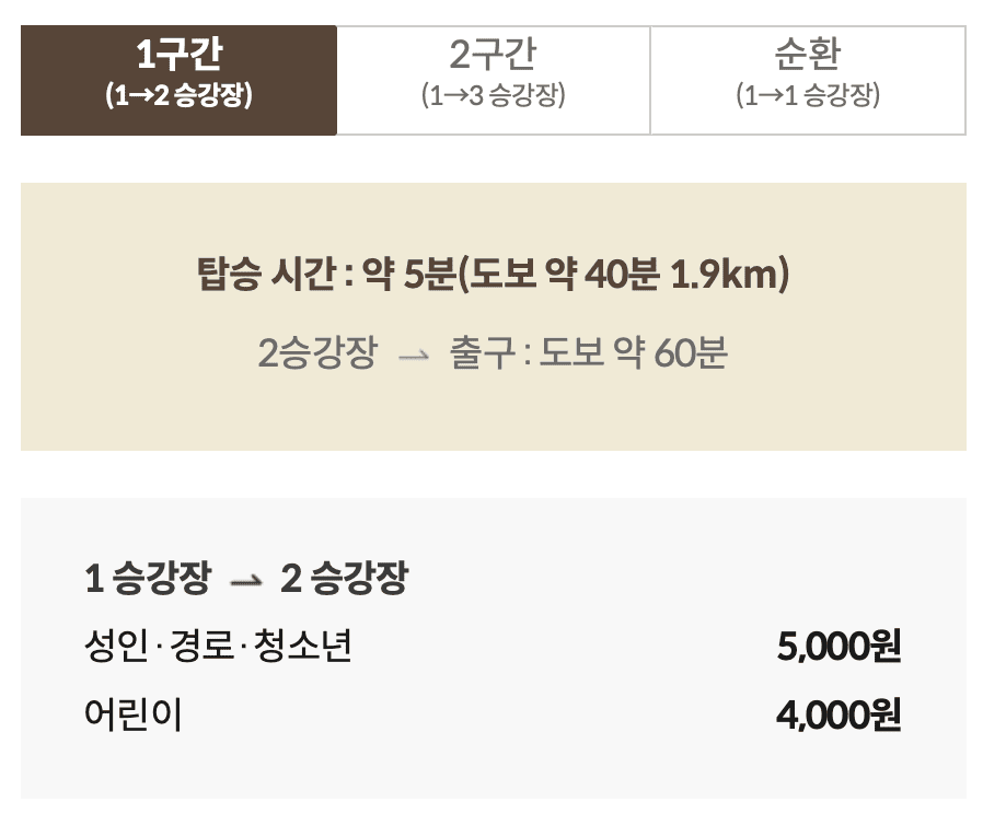 - 편도 모노레일 + 도보 하산 (자연 감상 & 체력 부담 적음)