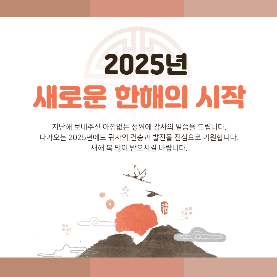 - "새로운 시작을 앞두고, 감사의 마음을 전합니다. 2025년에도 변함없는 행복과 성공이 함께하시길 바랍니다."