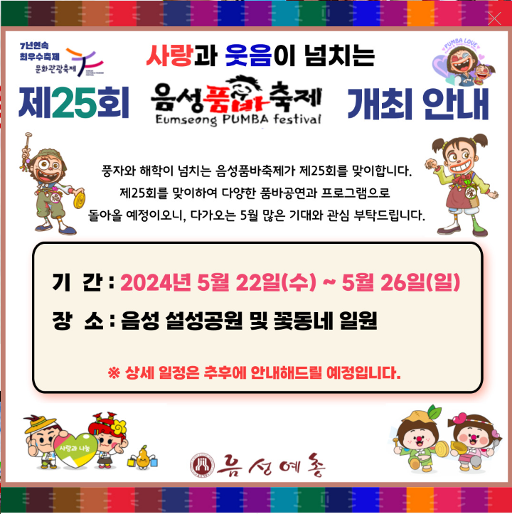 - 기간 : 2024. 05. 23.(목) ~ 05.26.(일)