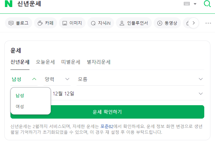 2025년 신년 운세, 네이버 운세 무료 이용방법