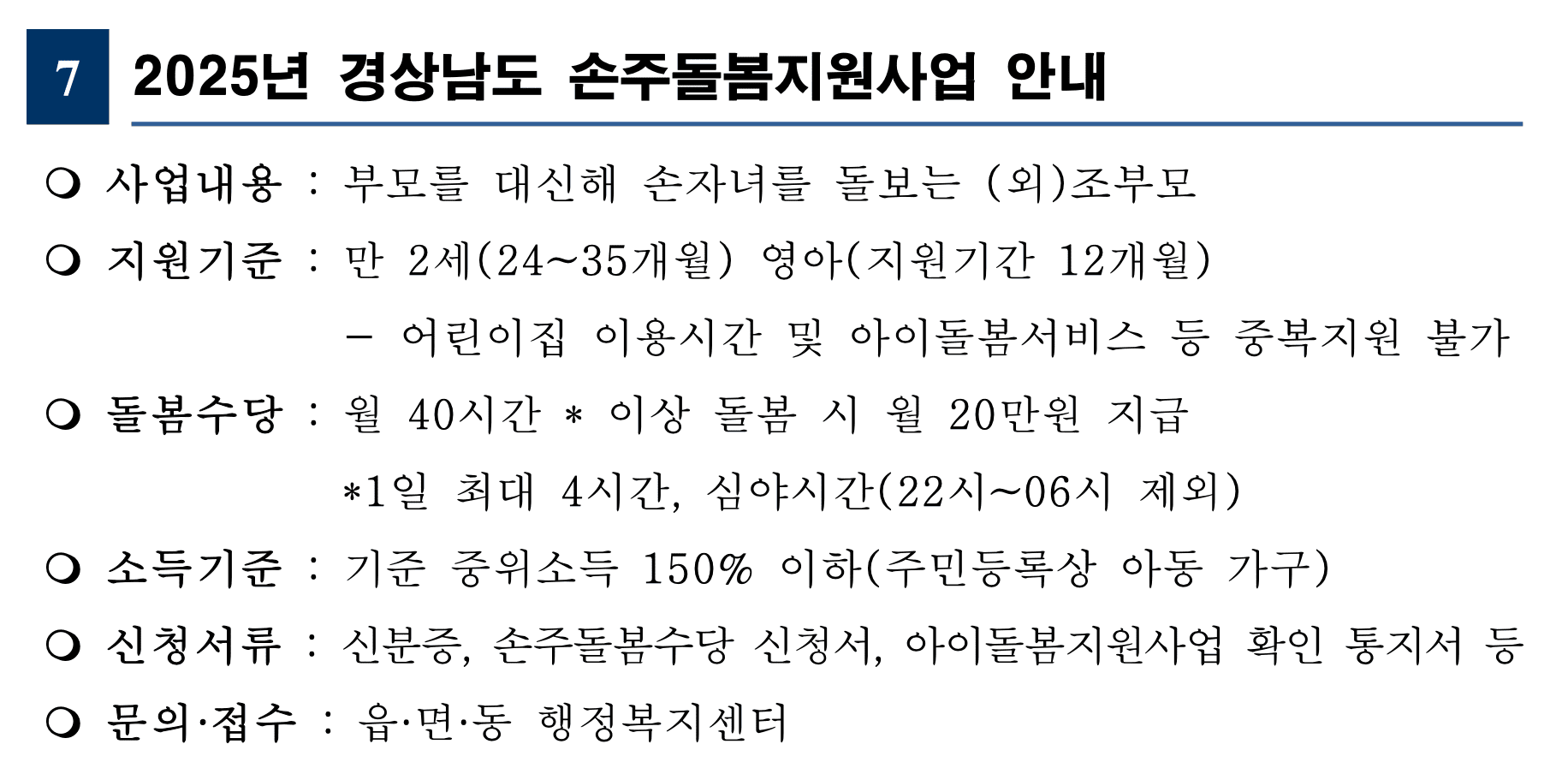 2025년 손주돌봄수당(경상남도) 신청 방법과 지원 대상 총정리