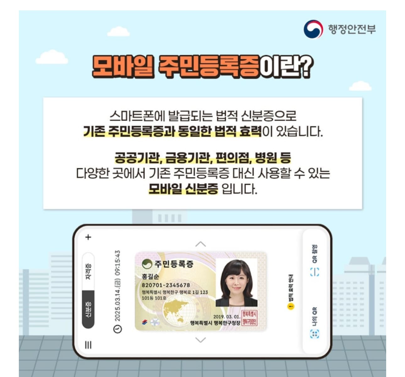 - 네, 모바일 신분증은 실물 신분증과 동일한 법적 효력을 가지며, 공식적인 신분 확인 수단으로 인정됩니다.