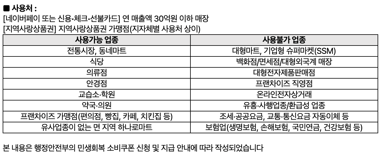 - 입구/계산대에 ‘민생회복 소비쿠폰’ 스티커 → 사용 가능 여부 판단