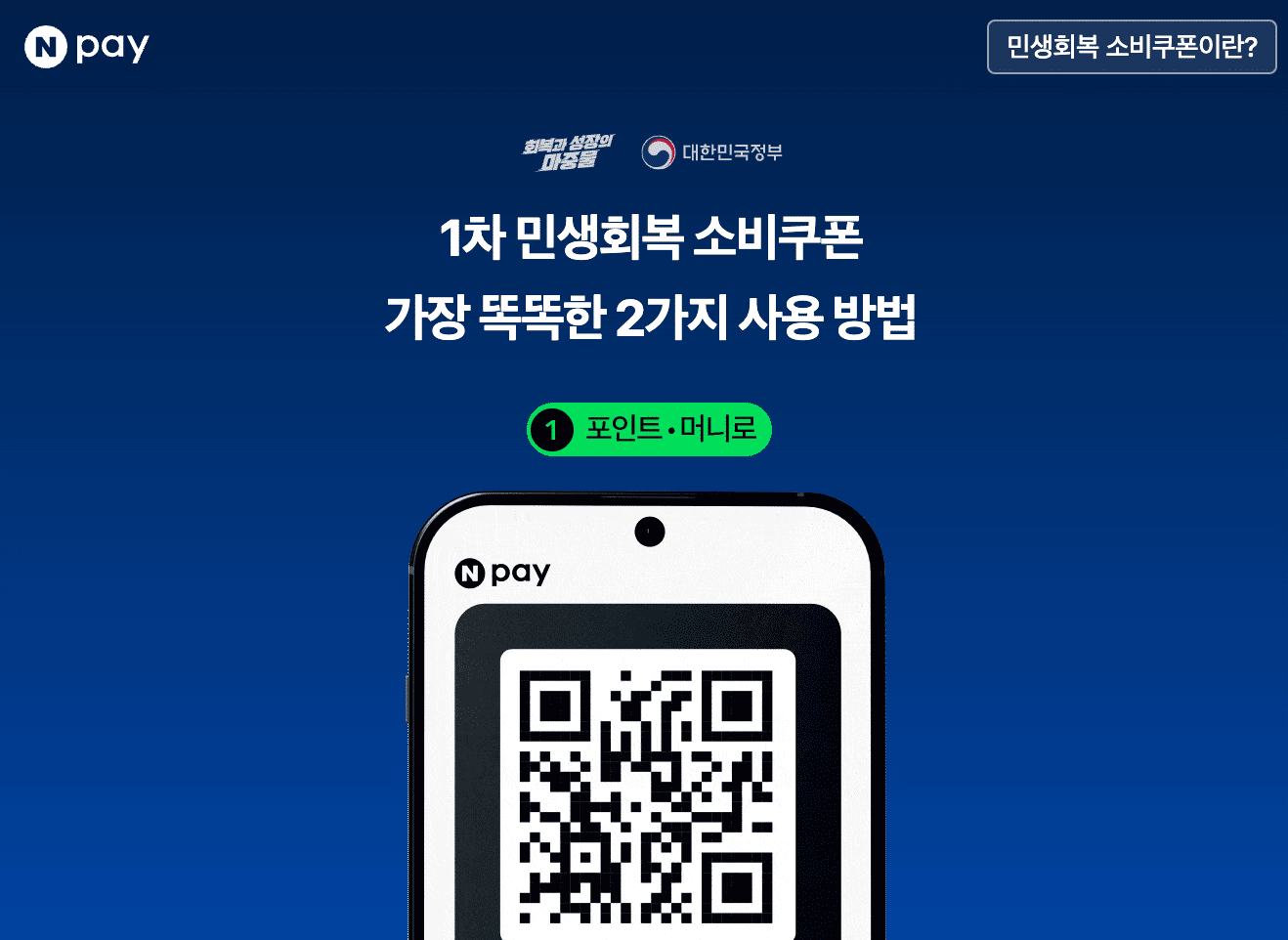 - 네이버페이 앱 실행 또는 ‘민생회복 소비쿠폰’ 검색