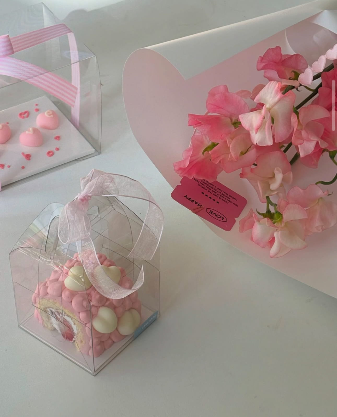 초콜릿이 너무 평범하다면, 사랑스러운 하트 케이크와 스위트피 꽃다발을 선물해 보세요. 감성적인 디자인과 달콤한 맛이 어우러져 특별한 발렌타인데이를 완성한다.