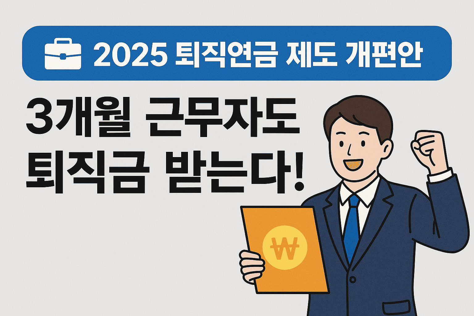 2025년부터 근로자들의 노후 준비가 훨씬 더 든든해집니다. 그동안 1년 이상 근무해야 받을 수 있었던 퇴직금이 이제는 단 3개월 근무만 해도 지급 대상이 됩니다. 이번 개편은 단순한 수당 확대가 아니라, 대한민국 전체 퇴직연금 시스템을 근본적으로 바꾸는 커다란 변화입니다.