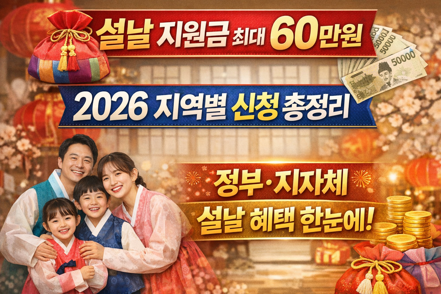 2026년 설날을 맞아 전국 지자체들이 설날 특별 지원금(최대 60만원) 지급 계획을 발표했습니다.